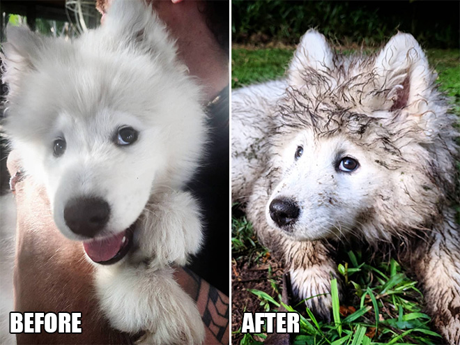 Also, the before and after pictures of these muddy doggos will surely lake you laugh out loud. These cute pictures will definitely make you fall in love with these furry dogs. And if this happens and you do not have a pet. We would recommend you to get yourself to spend a great time.