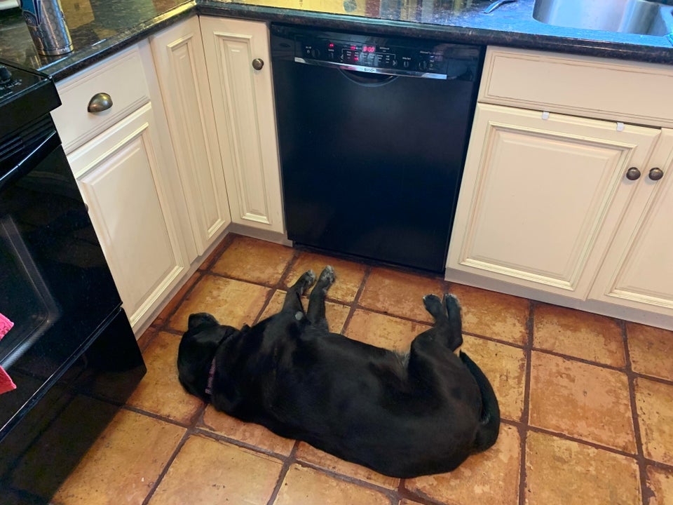 “Trapped himself in the shower at some point during the night. Woke up too scared whining.”