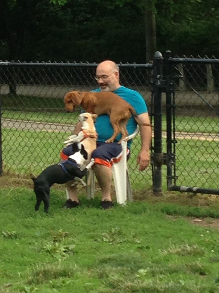8. I was wrestling with my dog and forgot that he never misses an opportunity to eat.