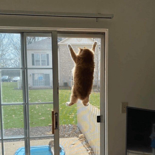 30. “Could you come here to catch me, hooman? I’ve just found out that climbing the tree is so funny.”