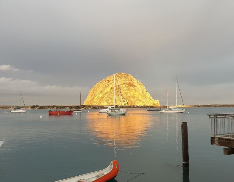 This is Morro Rock, an exceptionally beautiful piece of land. During every sunrise, the rock looks like it is a massive chunk of solid gold.