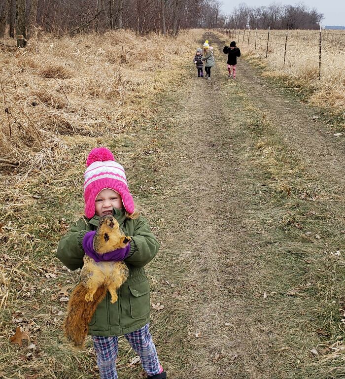 #34 Introducing My Middle Child (Please Note The 3 Other Children Playing Normally In The Distance). She Found A Dead Squirrel And Was Super Excited