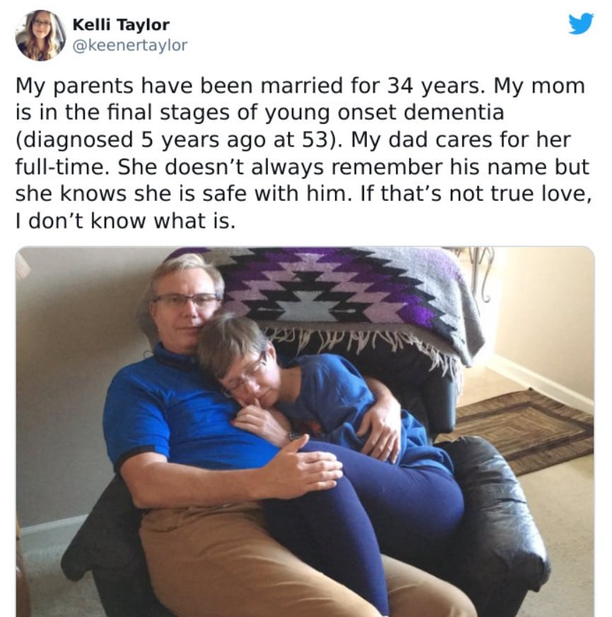 The story behind this picture of my grandparents: They have been married for over 60 years. My grandmother is suffering from dementia and has recently had a stroke. But as soon as he walked in she said “that’s my boyfriend Willis” and he laid there with her.