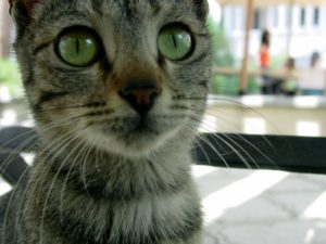 I talk to myself constantly so my cat thinks it’s normal to walk around making chatty noises all the time. If he’s awake, he’s talking. I think it’s adorable but it drives my husband nuts, which has resulted in my husband yelling at him a lot (don’t worry, the cat doesn’t get upset). Now the cat thinks that’s just how my husband talks, so whenever he sees him he yells at him really loudly in order to imitate him. My husband will walk in the room and my cat will stop whatever he’s doing and just meow SO LOUDLY right in his face. It’s absolutely hilarious, dude got exactly what he deserved.
