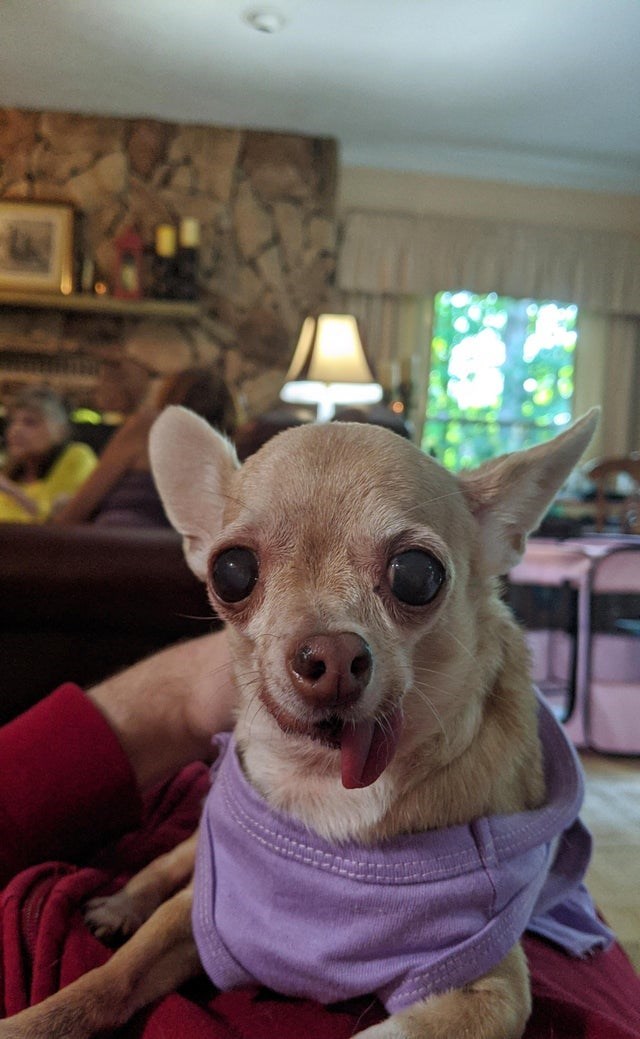 20. “My grandmother adopted this 14-year-old angel that howls at the top of her tiny lungs and wears dresses made from t-shirt sleeves”