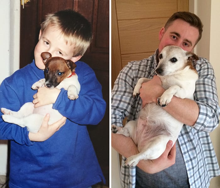 Hopefully, some of the people who have grown up with their furry friends have shared pictures with us. These before & after pictures will seriously melt your heart. And if you don’t have a pup till now, you might get one right away because they are so precious.