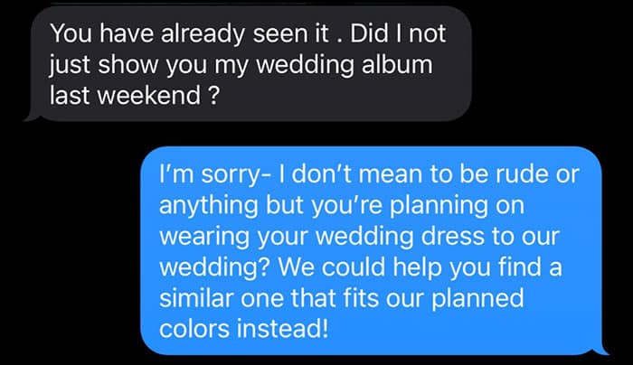 This mother-in-law was dubbed ‘the worst people have ever seen,’ and it’s hard to imagine how anyone could find common ground with her. “I am at an absolute loss of words right now,” stated the bride-to-be. The bride further shared screenshots of the chat that she had with her mother-in-law.