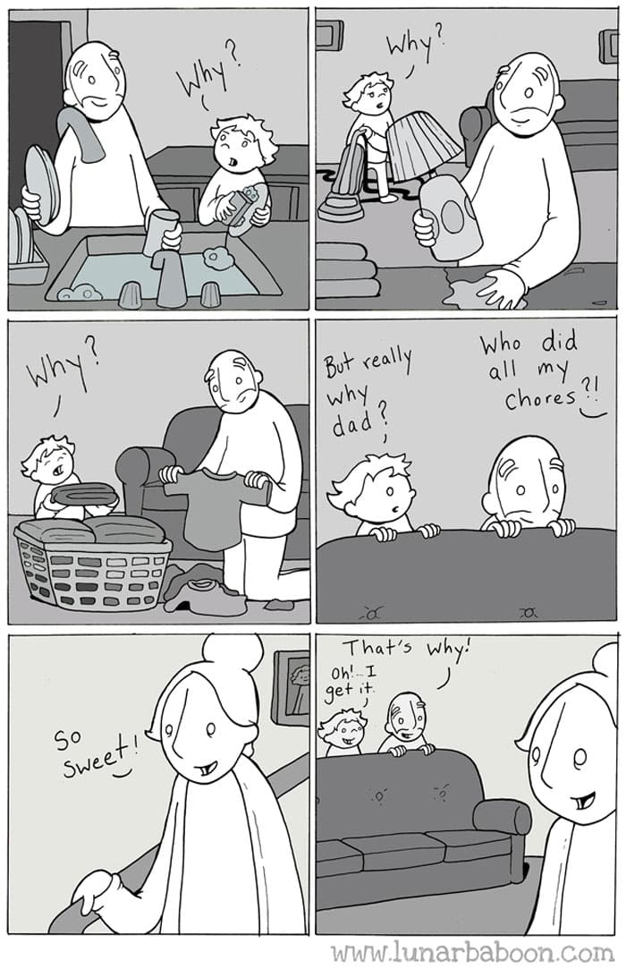 Grady, a dad of two makes these relatable comics that he has been sharing for a while now. His project is called Lunarbaboon. When he started this project, it was to fight anxiety and depression. What he tries to teach his son and daughter have been reflected in these illustrations. Do let us know what you think about them, and can also share your personal experiences with us.