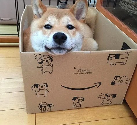 Just like a cat finds it comfy to sit in a cardboard box, this dog has the same fetish. It seems as if he is very cozy in it.