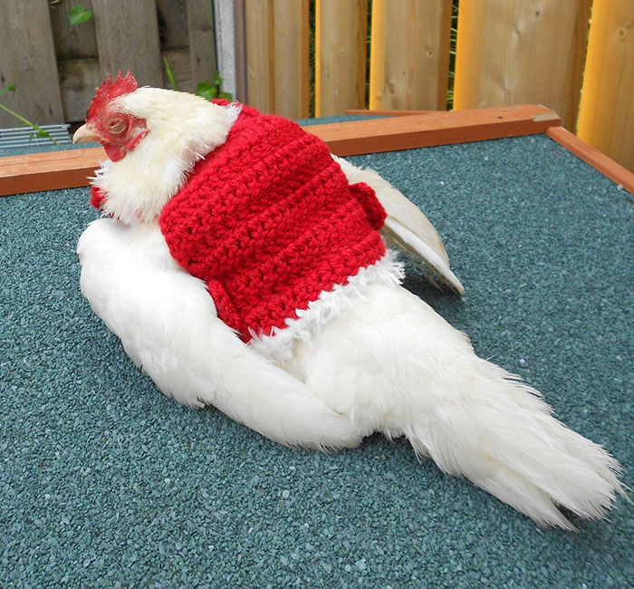 A shop called Etsy is selling the most adorable sweaters online for chickens for Christmas. Scroll down to see the product.