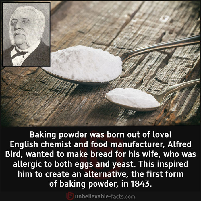 There is a page on Facebook called “Unbelievable Facts” which is described as a source for the best bizarre, strange, and extraordinary stories on the internet. It has more than 8 million people who enjoy learning and sharing. Baking powder was born out of love and aluminum is one of the most recyclable materials ever created.