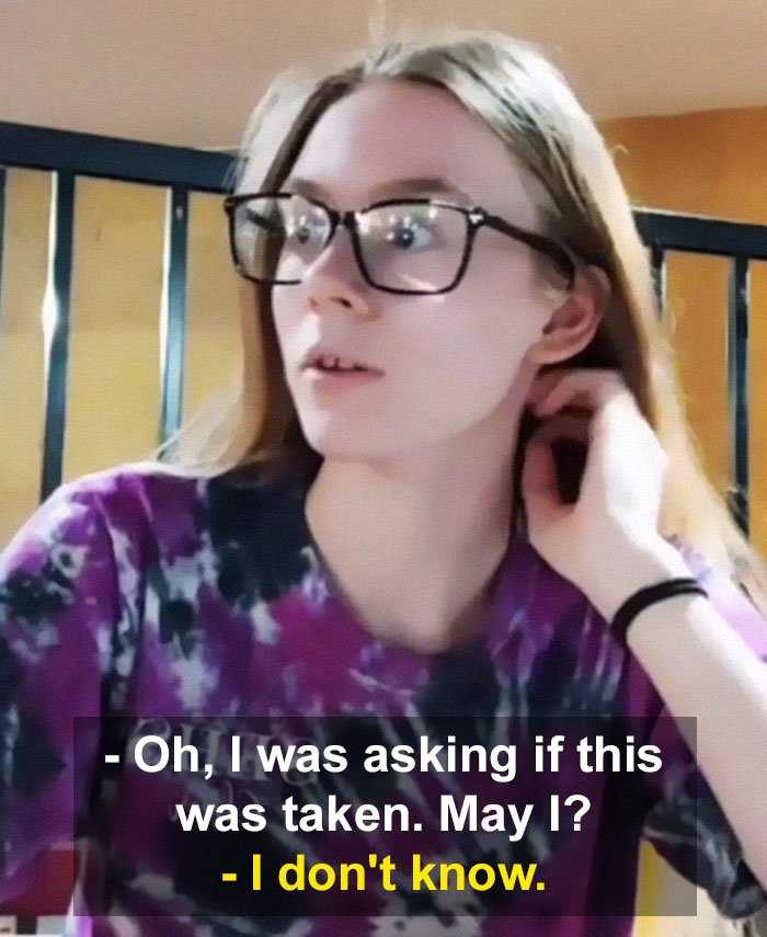 The teenager was clearly scared and didn’t want to talk to the guy who was chatting her up