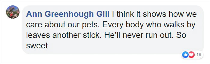 Turns out, many people visiting the cemetery have been leaving sticks on this doggy’s grave to pay tribute