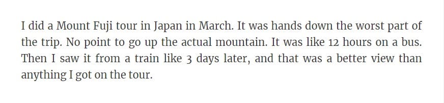 The Mona Lisa in Louvre in Paris. It’s just a small painting hanging quite far away in a really crowded room full of tourists. Don’t get me wrong, it’s a beautiful, iconic painting, but it’s not worth visiting the Louvre only for the Mona Lisa. The majority of the other artworks in that museum are more impressive than the Mona Lisa.