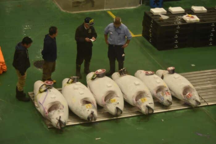 Toyosu Fish Market. The one that replaced Tsukiji as the fish auction central of Tokyo in 2018. You get to watch the auction process, but only if you go early in the morning. And even then, only through small glass windows two stories above the auction block. If there are more than a couple dozen other visitors, you will not be able to see anything.