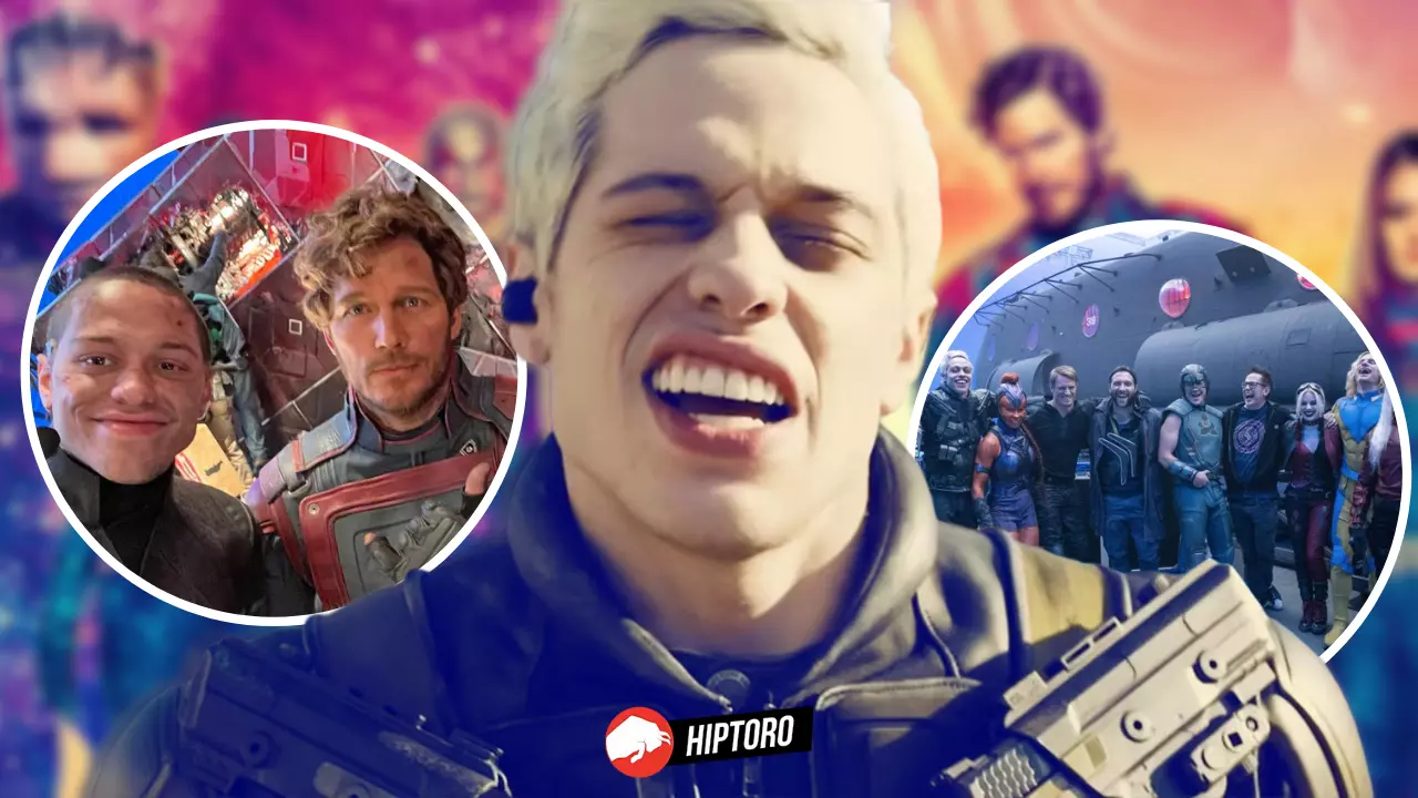 “Pete not only voiced but actually came to visit us in Atlanta,” the filmmaker revealed, including a series of photos with Davidson standing next to cast members Pratt, Saldana, and Klementieff.