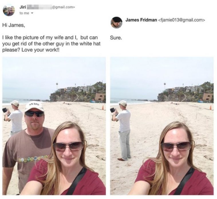There are many failed attempts that people do for excelling in Photoshop. It is not easy to become a master, but this guy named James Fridman is a real wizard in altering images. His hilarious ways of trolling people have made him popular on the Internet. People ask him for altering their images and his reply to this is super savage.
