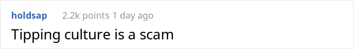 When asked about the tipping culture in the US, the user told us, “[It] is one of the biggest scams against low-wage workers in the country. It’s exploitative and is only kept in place by companies as a way to keep labor costs way down by having the customer be the primary source of a worker’s income.” The problem is that tipping isn’t mandatory. “The worker is reliant on the customer feeling generous at that moment. There is no feeling of security as you never know what the whims of a customer are going to be.”