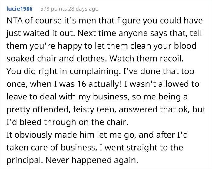 The 16-year-old student recently shared a story of how her teacher told her to control herself when she asked to use the bathroom as her period started