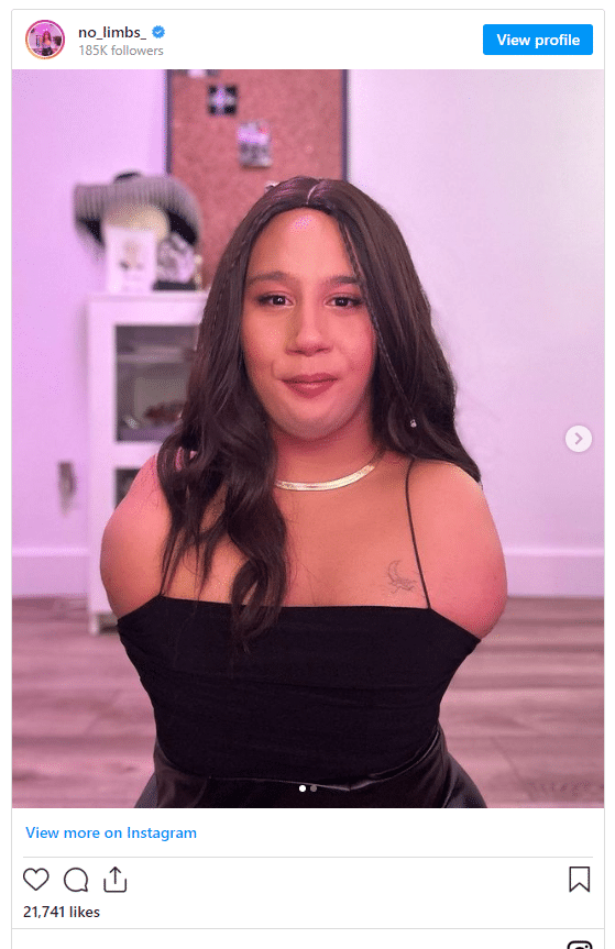 The influencer, who recently came out to her fans as a Trans woman, was born with Hanhart Syndrome, a rare condition that causes her to lack arms and legs.