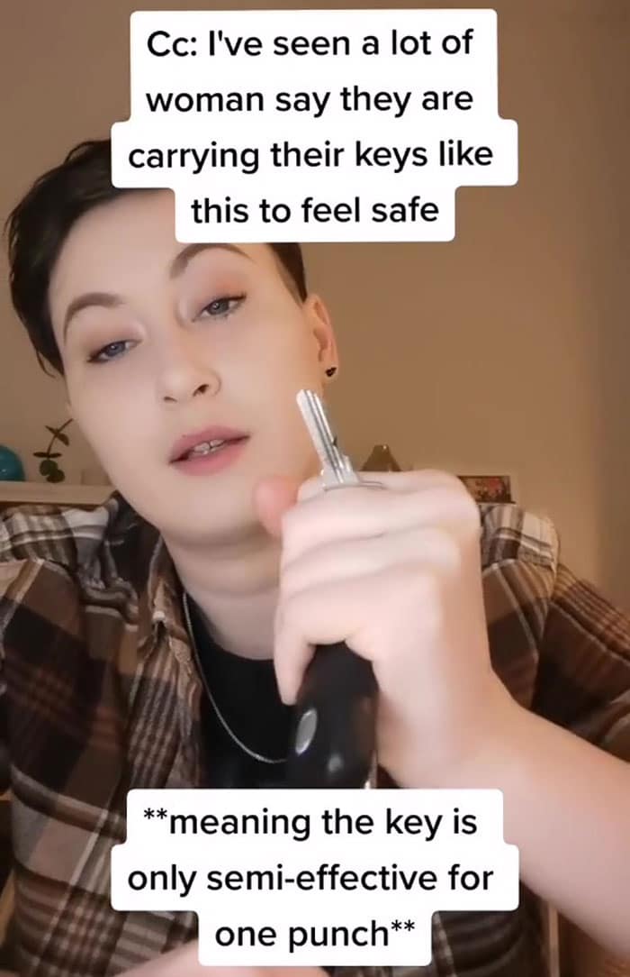 And recently, TikToker has recently joined this thing. She is teaching women to hold the keys right way for self-defense.